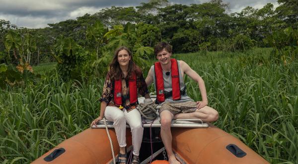 Die Luft ist schwül, unzählige Vogelarten zwitschern um die Wette, das üppige Grün des Regenwalds ragt bis zum Ufer des Amazonas-Stroms. Es ist ein gewaltiger Fluss, sechsmal breiter als der Rhein. Moritz Jahn und Greenpeace-Kampaignerin Katharina van der Smissen balancieren über einen schmalen Holzsteg und steigen in ein Schlauchboot (siehe Foto). Sie stoßen sich vom Ufer ab und fangen an zu lachen. „Die Natur ist der Wahnsinn!!! Heute gehen wir mit local river communities auf Entdeckungstour! 😊", schreibt der Schauspieler in einer ersten Nachricht an die Greenpeace Zentrale in Deutschland.
