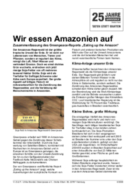In Brasilien wird durchschnittlich pro Minute Regenwald in der Größe von sechs Fußballfeldern vernichtet. Aus Gier nach billigem Fleisch in Europa muss der Urwald riesigen Sojafeldern weichen. Die Soja dient in Europa als Tierfutter und je billiger sie angebaut werden kann, desto billiger wird hier das Fleisch.