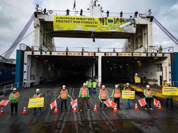 „Das Schiff und die Metsä Group stehen stellvertretend für die Ausbeutung der Natur und eine Politik, die immer noch wirtschaftliche Interessen über jene von Klima und Umwelt stellt", erklärt Matti Liimatainen von Greenpeace Finnland.