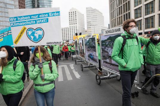 Greenpeace Aktive demonstrieren unter Corona-Auflagen beim zweiten Klimastreik in Berlin 2021