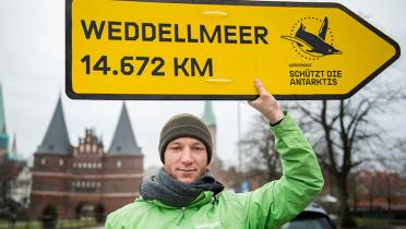 Der Südpol liegt von Deutschland aus in weiter Ferne, zum antarktischen Weddellmeer sind es über 14.000 Kilometer. Nicht meine Baustelle? Greenpeace-Aktivistinnen und -Aktivisten in 75 deutschen Städten fühlen sich sehr wohl verantwortlich – und machten sich heute in Fußgängerzonen und an öffentlichen Plätzen für ein antarktisches Schutzgebiet stark. Im Oktober entscheidet die Antarktis-Kommission CCAMLR darüber, ob das Weddellmeer vor industrieller Großfischerei geschützt wird. Es wäre das größte Schutzgebiet der Welt – rund fünfmal so groß wie Deutschland.