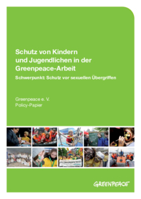 Mit einer Policy zum Schutz von Kindern und Jugendlichen in der Greenpeace-Arbeit (Download unten auf dieser Seite) definiert Greenpeace Maßnahmen zum Schutz von jungen Menschen. Wir formulieren Leitlinien für ein gutes und verantwortungsvolles Verhalten gegenüber Kindern und Jugendlichen und legen das Vorgehen für den Fall einer Grenzverletzung gegenüber Kindern- und Jugendlichen fest. Besonderer Schwerpunkt der Greenpeace Kinder- und Jugendschutz-Policy ist der Schutz von jungen Menschen vor sexuellen Übergriffen.