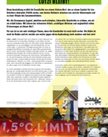 Aus dieser Situation heraus ist die Idee für diese Ausstellung entstanden. Ziel war es, die Jugendlichen zu unterstützen, die eigenen Erfahrungen zu verarbeiten und zu zeigen, dass die Welt am 14. Januar 2023 noch nicht untergegangen ist. Dass die Kohle noch im Boden ist und es sich lohnt, sich für jedes zehntel Grad einzusetzen. Die Jugendlichen haben diese Ausstellung selbst konzipiert, Texte geschrieben, Interviews geführt und Bilder ausgewählt. Es ist ein Bild dessen, wie sie die Welt wahrnehmen und was sie mitteilen wollen. Es ist ein unverfälschtes Bild aus dem Frühjahr 2023, das die damalige Stimmung innerhalb der Greenpeace Jugend gut transportiert. Die Beiträge stammen von Jugendlichen der Greenpeace Jugend, aber auch anderen Jugendlichen und persönlichen Kontakten in die junge Klimagerechtigkeitsbewegung.