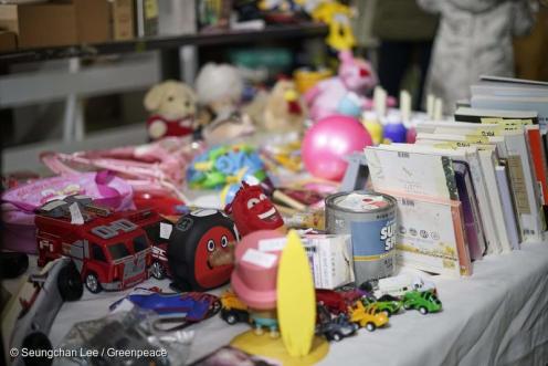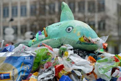 Greenpeace Aktion in Berlin gegen die Zerstörung von Neuwaren und Plastikflut in den Meeren