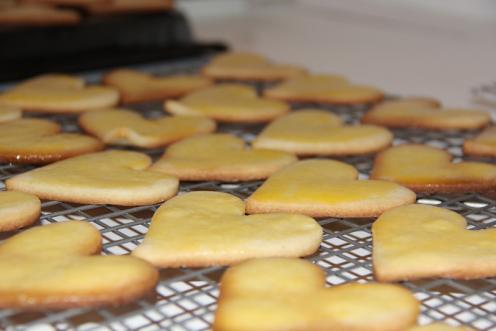 Die Plätzchen müssen dann für 10 min bei 180 Grad Umluft in den vorgeheizten Ofen.