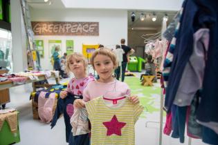 Greenpeace und GEOlino boten bunte Kleidung, kreative Siebdrucke und fetzige Musik.