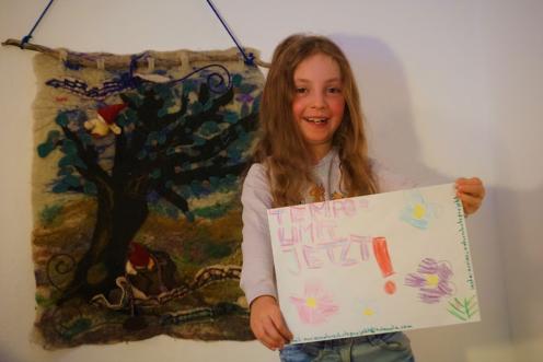 Eigentlich interessieren mich alle Themen auf meinen Plakaten. Besonders, wie der Klimawandel entsteht. Deswegen versuche ich dagegen zu wirken. Ich fordere auf meinen Plakaten zum Beispiel Ausstieg aus dem Kohlestrom, mehr Blühstreifen für Bienen, mehr erneuerbare Energien und keine Weltreisen für Obst und Gemüse. Wir versuchen, so gut wie möglich auf Lebensmittel von weit weg zu verzichten. Deswegen bauen wir viel im eigenen Garten an, sogar Melonen!