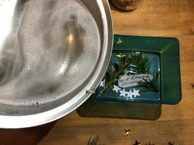 Außerdem brauchst du einen oder mehrere kleine Gegenstände, die du in die Seife einschließen willst und eine Form, in die du die Seife dann füllen kannst. Dafür eignet sich zum Beispiel eine Tupperdose.