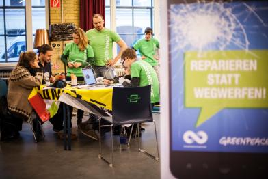 Aktionsflyer aus dem Greenpeace Aktionspaket "Kleidertauschparty" für junge Umweltschützer:innen