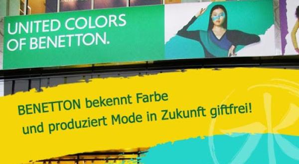 Greenpeace fordert im Rahmen der "Detox"-Kampagne von internationalen Modeherstellern auf die Verwendung und Freisetzung gefährlicher Chemikalien bis 2020 zu verzichten. Die gesamte Modeindustrie ist aufgerufen, die anhaltende Wasserverschmutzung zu beenden und ungefährliche Alternativen zu entwickeln. Neben Benetton haben inzwischen Puma, Nike, Adidas, Li-Ning, H&M, C&A, Marks&Spencer, Mango, Esprit, Zara, Levi's und Uniqlo die Selbstverpflichtung unterzeichnet.