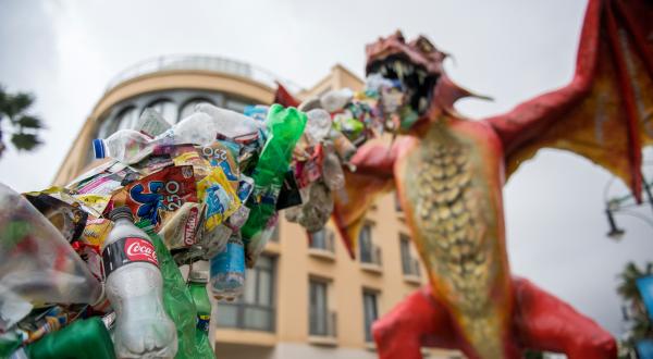 Damit sollen die Teilnehmer der Konferenz – etwa 1000 Abgeordnete aus Politik, Wirtschaft und Zivilgesellschaft, die sich dem Schutz der Weltmeere widmen wollen – nicht nur daran erinnert werden, dass Plastikmüll eines der großen Probleme unserer Ozeane ist. Der Drache soll ihnen auch vor Augen führen, welche Konzerne ihn hauptsächlich produzieren.