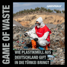 „Die Ergebnisse sind absolut alarmierend”, sagt Manfred Santen, Greenpeace-Experte für Chemie. “Wir müssen damit aufhören, andere Länder mit unserem Plastikmüll zu verschmutzen. Die Bundesregierung muss Abfallexporte sofort verbieten.” Doch damit ist es nicht getan: Wie der Report zeigt, haben die Plastikmüllexporte aus der EU bereits beträchtliche Umweltschäden in den Zielländern angerichtet. “Darum müssen deutsche Behörden Hilfe und finanzielle Unterstützung für die Beseitigung der Umweltschäden und die fachgerechte Sanierung von illegalen Müllhalden in der Türkei leisten“, so Santen weiter.
