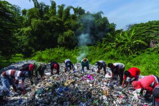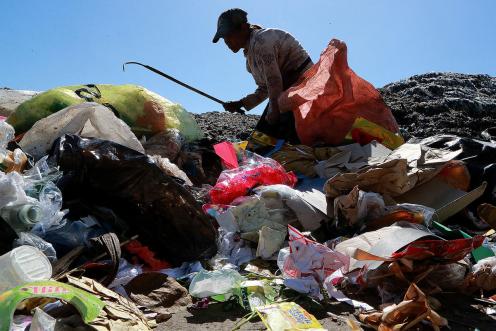 Auf den Philippinen: Eine Müllsammlerin durchwühlt den Abfall auf einer Mülldeponie in Dumaguete City.