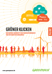 Streaming in High-Definition-Qualität, 360-Grad-Videos und die Verlagerung von immer mehr Speicherplatz in die Cloud sorgen für ein gigantisches Volumen an Information im Netz. Experten sagen voraus, dass 2020 alle zwei Minuten eine Datenmenge übers Internet ausgetauscht wird, die sämtlichen jemals gedrehten Spielfilmen zusammen entspricht. Die Datenflut zu bändigen hat ihren Preis – sie kostet eine gewaltige Menge Energie. Die dritte Ausgabe des jährlich erscheinenden Greenpeace-Reports „Grüner klicken“ bewertet erneut, wie die größten Internetfirmen ihren Bedarf an Strom decken.