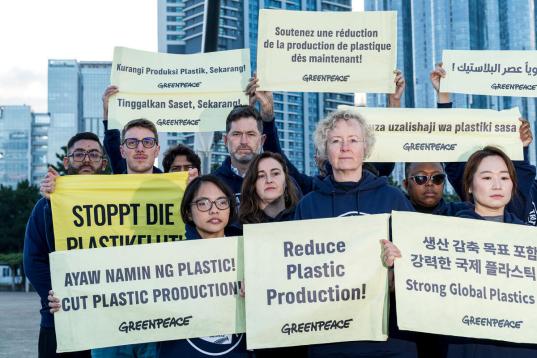 Gemeinsam mit inzwischen über 90.000 Unterzeichner:innen fordert Greenpeace ein starkes UN‑Plastikabkommen mit klaren Reduktionszielen.