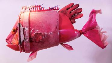 Die tierischen Gäste sind Teil der aktuellen Ausstellung an Bord des Greenpeace-Schiffes, das von heute bis zum 27. Juni unter anderem auf Ems, Rhein, Main und Donau unterwegs ist – den detaillierten Tourplan finden Sie hier. Die Künstlerin Antje Truelsen hat die Tiere aus Plastikmüll geschaffen, der Verein Jordsand und Greenpeace an der Nordseeküste aufgesammelt haben. Aus Shampooflaschen, Gummihandschuhen und Schwimmflügeln wurde ein Rotbarsch, aus Kanister, Badelatschen und mehr ein Mantarochen.
