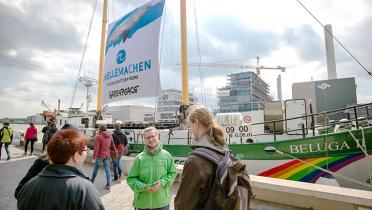 „Dieser im Meer treibende Plastikmüll kann für Meerestiere zum qualvollen Tod führen“, sagt Lisa Maria Otte, sie ist Umweltwissenschaftlerin und Greenpeace-Expertin für Meere und Plastik bei Greenpeace. „Sie strangulieren sich oder verwechseln Plastik mit Nahrung und verhungern im schlimmsten Fall mit vollem Magen, da der Kunststoff nicht verdaut werden kann.“ Mit ihrer Tour will die Besatzung der Beluga ein Bewusstsein für die Schönheit und Verletzlichkeit des Lebensraums Meer schaffen. Während der Führung durch die Ausstellung geben Aktivisten und Ehrenamtliche unter anderem praktische Tipps zur Reduzierung von Plastikmüll im Alltag, Einblick ins Leben an Bord und die Greenpeace-Arbeit für den Umweltschutz.