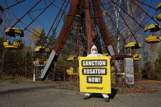 Greenpeace Ukraine fordert umfassende Sanktionen gegen den russischen Atomkonzern Rosatom und die sofortige Beendigung aller internationalen Beziehungen zu diesem Konzern. Rosatom trägt die Verantwortung für die Besetzung der Atomkraftwerke Tschernobyl und Saporischschja.