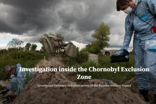 Die Strahlenmessungen des Teams dokumentierten in der Region Radioaktivitätswerte, die den internationalen Grenzwert für Atommüll bis um das Vierfache überschreiten. Auf ihrer viertägigen Messtour analysierte das Greenpeace-Team 19 selbst genommene Proben aus dem Areal, in dem russische Soldaten Schützengräben ausgehoben und so radioaktiv verstrahlte Erde freigelegt haben. Die stark kontaminierte Probe übergaben sie den ukrainischen Behörden vor Ort.