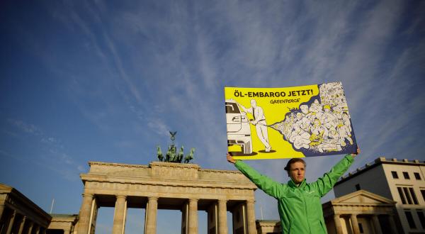 Auch gut zwei Monate nachdem Russlands Präsident Wladimir Putin den Überfall der Ukraine befohlen hat, zahlen Deutschland und die EU weiter jeden Tag rund 500 Millionen Euro für Energieimporte an Russland. Dadurch finanzieren wir diesen Angriffskrieg mit all seinen Gräueltaten mit und schwächen verhängte Sanktionen. Das meiste Geld fließt dabei bislang für den Import von Öl. Und nach den Plänen der Bundesregierung soll damit erst Ende des Jahres Schluss sein. Dabei zeigt eine Greenpeace Recherche: Deutschland kann sofort auf Öl aus Russland verzichten. Auch deshalb fordert Greenpeace weiterhin gemeinsam mit anderen Akteur:innen der Zivilgesellschaft, Wissenschaftler:innen und Künstler:innen in einem offenen Brief, den Import fossiler Brennstoffe aus Russland zu stoppen.