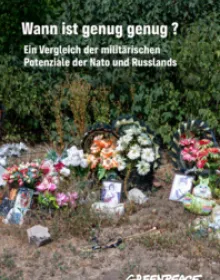 Wenn Frieden durch militärische Übermacht gewonnen werden könnte, hätten Deutschland und die Nato längst Frieden geschaffen. Die militärische Überlegenheit der Nato und der anhaltende Rüstungswettlauf zwischen Nato und Russland bieten aber keine Perspektive für Frieden. Eine besondere Gefahr liegt in den Atomwaffen. Beide Parteien verfügen über ausreichend Atomwaffen, um die Gegenseite zu vernichten. Greenpeace warnt, dass die Rüstungsüberlegenheit der Nato und die fortgesetzten Aufrüstungsschritte keine echte Sicherheit schaffen. Vielmehr ist ein grundlegendes Umdenken in der Sicherheitsstrategie erforderlich. Statt immer weitererer Rüstungsausgaben sollte die Finanzierung internationaler Organisationen, humanitärer Hilfe und Entwicklungspolitik Vorrang bekommen.