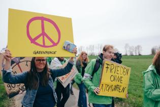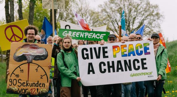 2020 hat Greenpeace unsere Vision einer friedlichen Welt im Greenpeace-Friedensmanifest formuliert. Über 40.000 Menschen haben bereits unterzeichnet. Auch dieses Jahr sind Greenpeace-Gruppen bei den Osterdemos mit dabei. Schwerpunkt ist der Osterdemos am Fliegerhorst Büchel in Rheinland-Pfalz gegen die Stationierung von US-Atombomben in Deutschland.