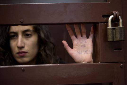 Kautionsanhörung von Faiza Oulahsen, Aktivistin aus den Niederlanden, vor dem Regionalgericht Murmansk.