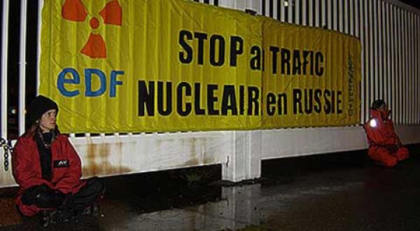 Im französischen Le Havre sind am Donnerstag 450 Tonnen Atommüll auf einen russischen Frachter verladen worden. Vorangegangen war eine ungeplante stundenlange Wartezeit: 20 Greenpeace-Aktivisten hatten ab zwei Uhr nachts an den Verladekränen gegen die illegale Fracht nach Russland protestiert. Französische Spezialeinheiten beendeten die Aktion am Vormittag. Die Aktivisten wurden festgenommen.