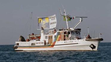 • Das Greenpeace-Schiff Beluga im Einsatz gegen die Atomkraft, Juni 1998