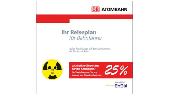 Die Deutsche Bahn fährt zu 25 Prozent mit Atomstrom. Dieser Strom kommt aus Neckarwestheim, auch aus Block 1, einem der ältesten und gefährlichsten Meiler in Deutschland. Er hätte laut Atomkonsens abgeschaltet werden sollen, darf nun aber acht Jahre länger laufen.