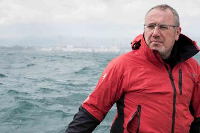 Greenpeace-Mitarbeiter:innen aus Japan, Deutschland, Belgien und der Schweiz sammeln 2016 Proben vor der Küste Fukushimas.