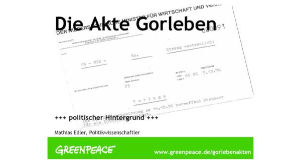 Die SPD, die Linken und die Grünen initiierten einen Untersuchungsausschuss. Ab dem 22. April wird die Erkundung Gorlebens als Endlager vom Bundestag geprüft. Die geheimen Akten von Greenpeace werden auch zu einem realitätsnahen Bild beitragen, für das es höchste Zeit ist. Es muss endlich Licht ins Dunkel des Salzstocks gebracht werden, um die Risiken eines Endlagers für Mensch und Natur abschätzen zu können.