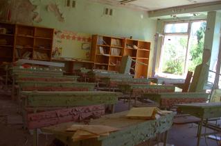 Tschornobyl war wie eine Stadt an der Front. Überall waren Soldaten, doch es gab auch Zivilisten. Die Gebäude einer früheren Schule dienten als Kaserne. Von dem Tag an wurde alles anders. Morgens wurden wir in Fahrzeuge verfrachtet und fuhren nach Tschornobyl. Ich saß in der Mitte der hölzernen Bank und blickte durch ein Loch in der Plane in die Umgebung. Ich erinnere mich, wie wir das Kraftwerksgelände durchfuhren. Am Morgenhimmel stand eine große, rote Sonne.