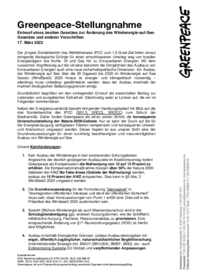 Greenpeace-Stellungnahme: EEG-ReferentInnen-Entwurf