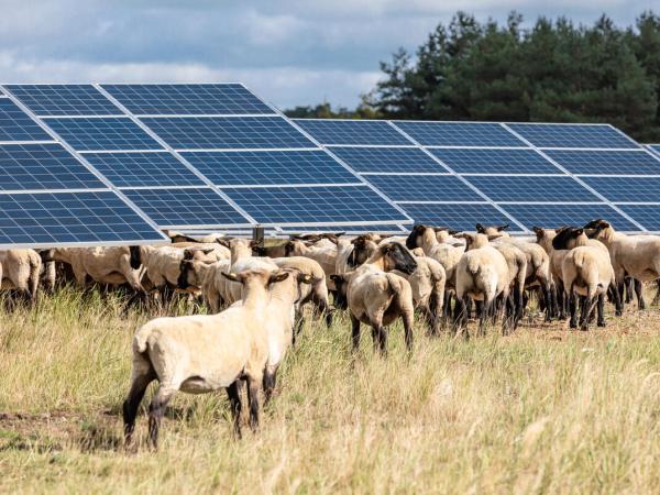 Die Technologie zur Stromerzeugung mit der Sonne nennt sich Photovoltaik, kurz PV. Im 1. Halnjahr 2024 erzeugte sie in Deutschland bereits 13,4 Prozent der Strommenge. Es gibt sie als kleine Anlagen auf Hausdächern ebenso wie riesengroß auf Fabrikhallen, über Feldern oder neben Autobahnen und Bahngleisen. Eine Doppelnutzung von Flächen etwa als Überschattung von Parkplätzen, in Kombination mit landwirtschaftlicher Nutzung oder neben Verkehrsinfrastrukturen kann Nutzungskonflikte verringern. werden. So können unter Solaranlagen Schafe weiden oder Landwirt:innen Gemüse anbauen und gleichzeitig Strom erzeugen.