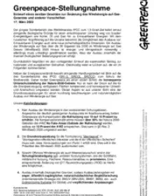 Greenpeace-Stellungnahme Windenergie-auf-See-Gesetz