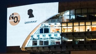 Ihrer Enttäuschung über das Ergebnis des Dieselgipfels verliehen Greenpeace-Aktivisten mit einer Projektion am Bundeskanzleramt Ausdruck: Dort stand heute Morgen in großen Lettern „Aktenzeichen NOx ungelöst“ zu lesen – in Anlehnung an die Fernsehsendung „Aktenzeichen XY ungelöst“, die ungeklärte Verbrechen zum Thema hat. „Der Gipfel hat kein einziges Problem gelöst“, sagt Benjamin Stephan, Greenpeace-Experte für Verkehr. „Er hat die drohenden Fahrverbote nicht abgewendet, er schützt niemanden vor giftigen Abgasen und bringt die Hersteller nicht dazu, endlich saubere Autos zu bauen.“ Ein Scherenschnitt der Bundeskanzlerin neben dem Schriftzug macht klar, wen die Umweltschützer für das Debakel verantwortlich machen: „Angela Merkel muss den Dieselskandal in all seinen Konsequenzen zur Chefsache machen“, so Stephan.