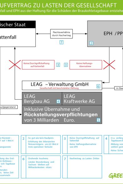 Eine Analyse des Forum Ökologisch-Soziale Marktwirtschaft (FÖS) im Auftrag von Greenpeace und der Grünen Liga bestätigt die Befürchtungen der Umweltschutzorganisationen: Die Leag-Tochter LE-V (Lausitz Energie Verwaltungs GmbH) soll die künftig unrentablen Tagebaue übernehmen, verfügt jedoch weder über ausreichendes Kapital noch über eine gesicherte Haftung durch den Mutterkonzern EPH – womit Rekultivierungskosten in Milliardenhöhe ungesichert bleiben.