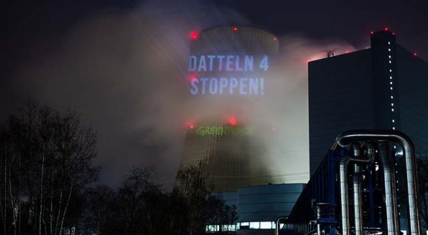 Klimaschutz: Demo und Lichtshow gegen Kohlekraftwerk Datteln 4