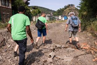 Bereits im Juni besuchten Greenpeace-Mitarbeitende das Ahrtal, um mit Betroffenen zu sprechen und sich ein Bild der bleibenden Schäden zu machen.