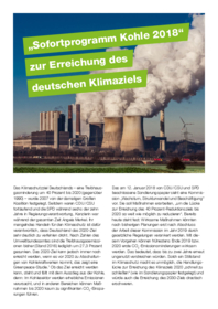 Koalitionsverhandlungen: Greenpeace-„Sofortprogramm Kohle 2018“ zur Erreichung des Klimazieles
