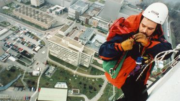 • Kletteraktivist am Kühlturm im Jahr 2000