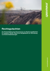 „Wir fordern die Landesämter auf, der Pflicht dringend nachzukommen und diese Sicherheiten von der LEAG einzufordern“, sagt Karsten Smid, Greenpeace-Experte für Energie. Denn wenn die sogenannte Vorsorgevereinbarung in Kraft tritt, die zwischen dem Land Sachsen und dem Bergbaukonzern LEAG für den sächsischen Tagebau Nochten beabsichtigt ist, gingen die Sicherheitsleistungen zu Lasten der Allgemeinheit: Weil sich die Auflagen an den wirtschaftlichen Interessen der LEAG orientieren statt am gesetzlich festgelegten Sicherungszweck, so das Rechtsgutachten.