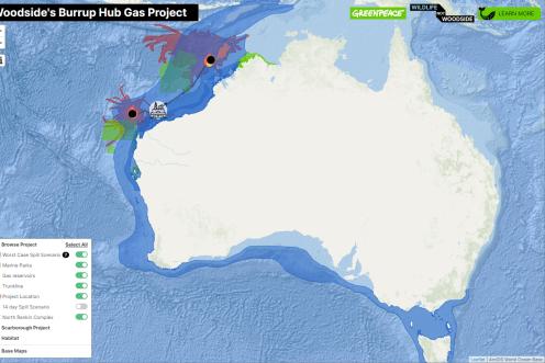 New spill modelling by Greenpeace Australia Pacific has revealed that an accident at Woodside’s Burrup Hub gas drilling project could result in a 77 day spill event, with toxic pollution devastating nearby marine parks and reaching as far as Indonesia.