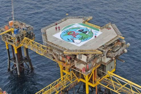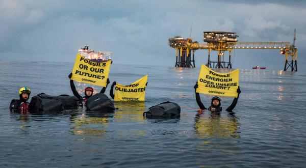 Vier Aktivist*innen haben eine Ölplattform besetzt. Sie fordern, jede weitere Ausbeutung von Öl und Gas sofort zu stoppen. Offshore-Wind statt Öl ist ihre Devise gegen Klimakrise.