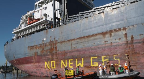 Protest an Pipeline-Frachter gegen Mega-Gasprojekt