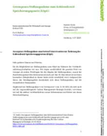 Greenpeace-Stellungnahme zu Kohlendioxid-Speichergesetz und CMS