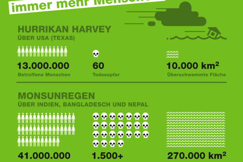 Was wir jetzt sehen, ist erst der Anfang. Das Klima wandelt sich, und die Zahl der extremen Wetterlagen wird weiter zunehmen. Greenpeace hat kürzlich erst eine Studie dazu veröffentlicht: Schon heute werden jährlich 21 Millionen Menschen durch klimabedingte Wetterkatastrophen zu Flüchtlingen. Auch diese Zahl wird steigen.