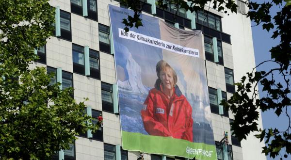 Die Aktivisten kritisieren die Wandlung Merkels von der erklärten Klimaschützerin zur Helferin des schmutzigen Kohlestroms. Der Bundesverband der Energie- und Wasserwirtschaft (BDEW) trifft sich hier zu seiner Jahrestagung. Die Untätigkeit der Bundesregierung im Klimaschutz führt zu einem regelrechten Boom der Kohleverstromung mit entsprechend höherem CO2-Ausstoß. Greenpeace fordert einen deutschen Kohleausstieg bis zum Jahr 2040 und angemessene Preise für CO2-Zertifikate. "Merkel beschädigt das Vertrauen in die Energiewende, wenn sie tatenlos zuläßt, dass wieder mehr schmutzige Braun- und Steinkohle verfeuert werden", sagt Greenpeace-Energieexperte Niklas Schinerl. "So riskiert sie ihre eigenen Klimaschutzziele."
