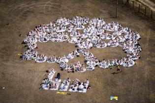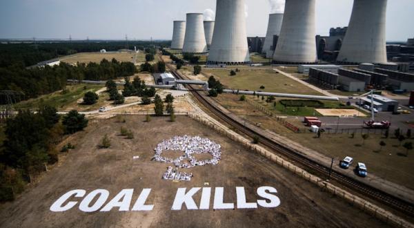 „Coal Kills“ – zu diesem Schriftzug und einem riesigen Totenkopf formierten sich hunderte Aktivisten heute vor dem Braunkohlekraftwerk Jänschwalde. Initiatoren der Aktion sind Greenpeace, die Umweltradtour Tour de Natur und das Lausitzer Klima- und Energiecamp.